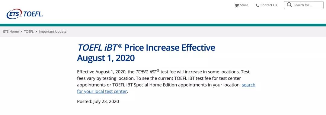 就在上周,ETS官网宣布:托福考试将进行全面涨价,但是因为不同的国家本身托福考试报名费价格不同,因此每个国家的托福考试费具体涨到多少还要进行单独的讨论。